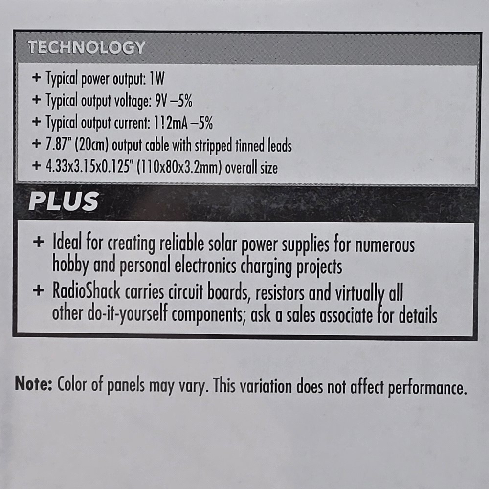 Note: Color of panels may vary. This variation does not affect performance.