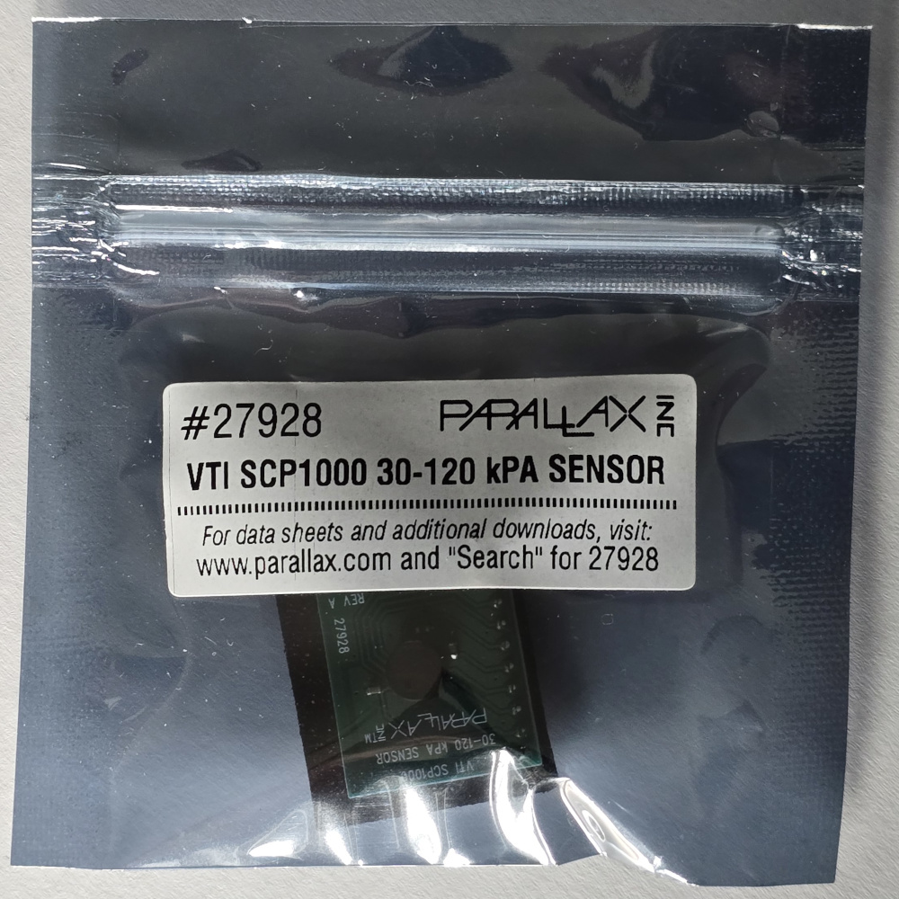 The VTI SCP1000 is an absolute pressure sensor which can detect atmospheric pressure from 30-120 kPa. The pressure data is internally calibrated and temperature compensated. The SCP1000 also provides temperature data and has 4 measurement modes as well as standby and power down mode.